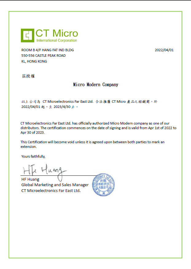 شرکت مالزیایی CT Micro ازسال ۲۰۱۸ (۱۳۹۷ خورشیدی) نمایندگی ایران را بر عهده دارد.